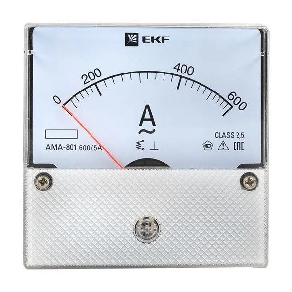 | Наименование производителя | AMA-801 аналоговый на панель (80х80) круглый вырез 600А трансф. подкл. EKF PROxima | |