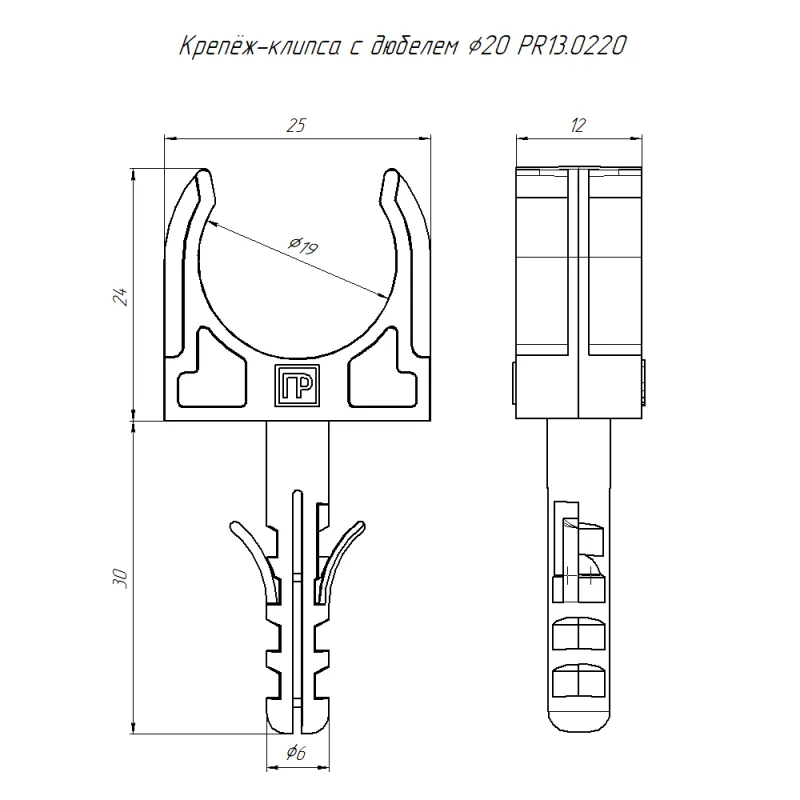 | Тип монтажа | Литой втычной дюбель | |