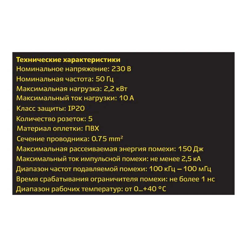 | Количество штепсельных розеток с заземлением | 5 | |