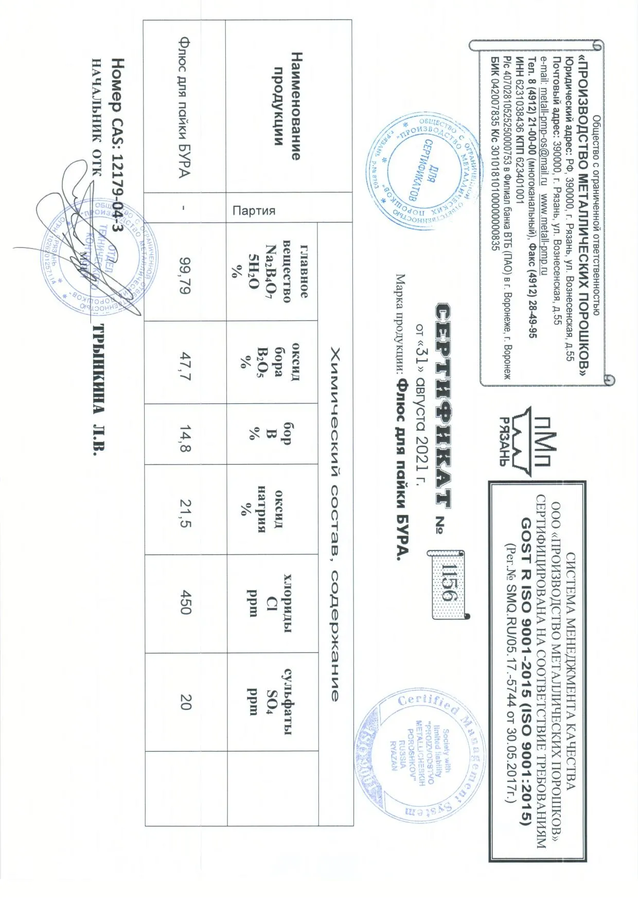 | Исполнение | Порошок | |