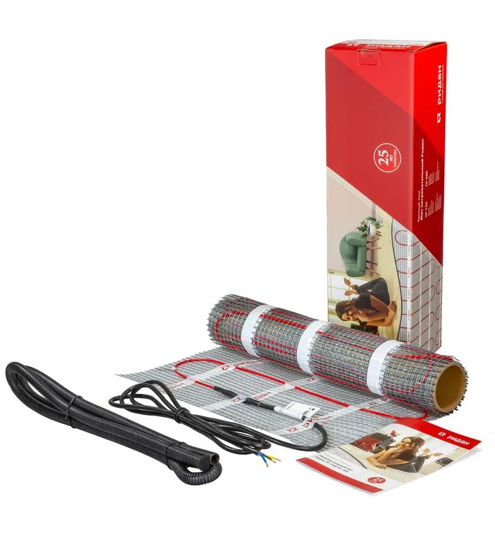 Конструктивно представляет собой нагревательный мат с двухжильным экранированным кабелем диаметром не более 3,5 мм с оболочками из фторопласта, закрепленным на самоклеящейся полимерной сетке. Двухжильный кабель с одним соединительным питающим кабелем позволяет существенно упростить и ускорить