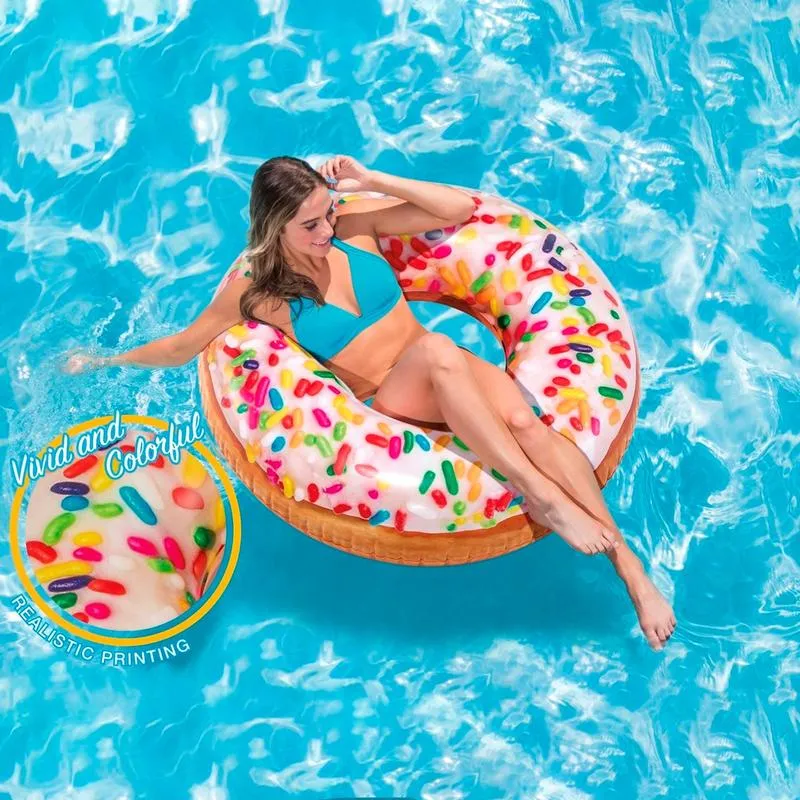 Надувной круг для плаванья имеет диаметр 97 см, поэтому будет удобен для детей от 9 лет, которые смогут благодаря ему увереннее себя чувствовать на глубине. На нём можно сидеть сверху, держась за удобные пластиковые ручки и покачиваться на волнах или потренироваться в плаванье, отрабатывая движение ног.