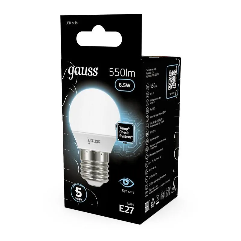 | Форма колбы лампы | Шар | |