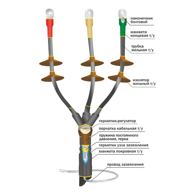 Обеспечивает выравнивание напряженности электрического поля и герметизацию корешка разделки кабеля за счет применения специального герметика-регулятора.