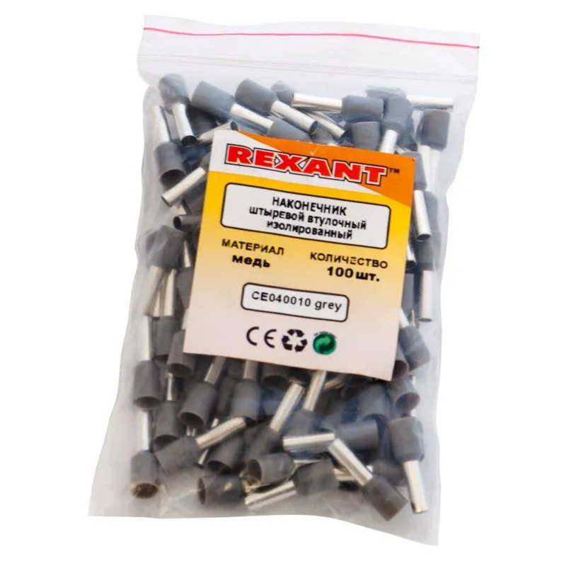 Наконечник штыревой втулочный изолир. (НШВИ F-9мм) 4кв.мм (СЕ040010grey) сер. Rexant 08-0821 можно приобрести в магазине ГРИНЛАЙН по выгодной цене. Производитель Rexant.
