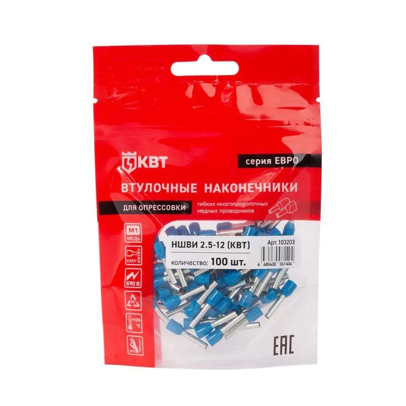 Наконечник штыревой втулочный изолированный НШВИ 2.5-12 ЕВРО син. КВТ 103203
