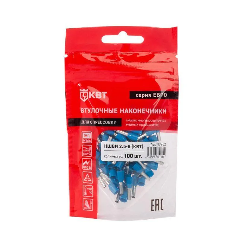 Наконечник штыревой втулочный изолированный НШВИ 2.5-8 ЕВРО син. КВТ 103202