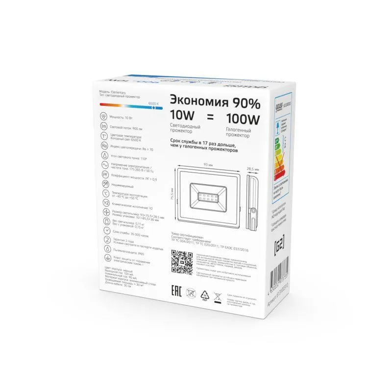 | Световая отдача лампы | 90 лм/Вт | |
