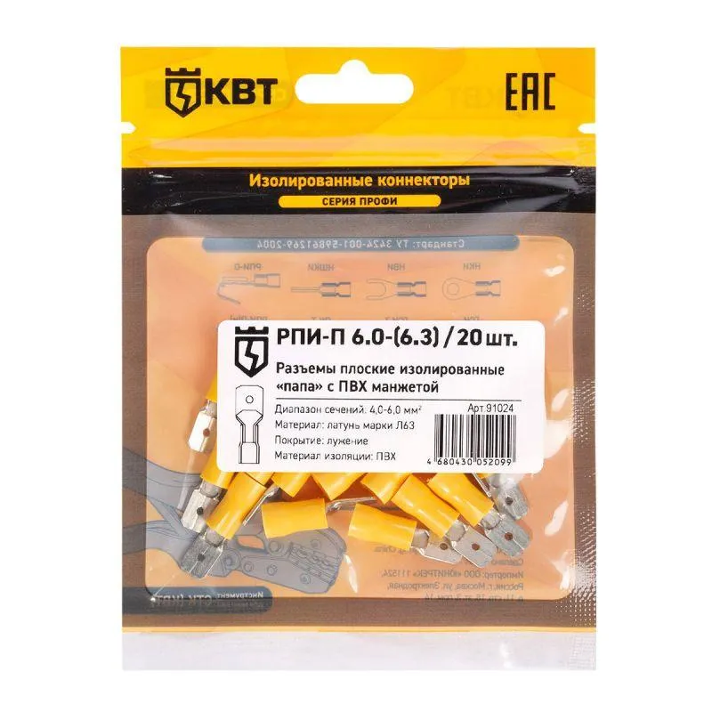 | Размеры наконечника | Плоский 6.3х0.8 мм | |
