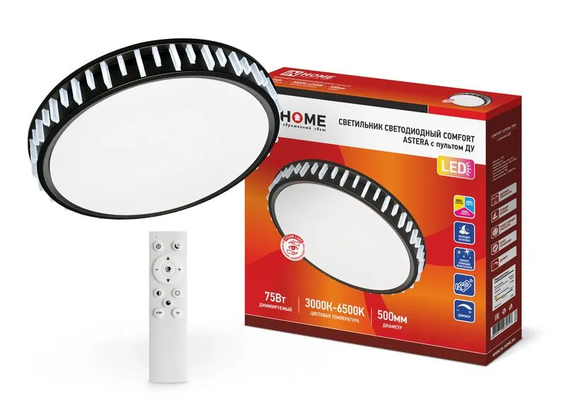 Светильник светодиодный COMFORT ASTERA 75Вт 230В 3000-6500К 6000лм 500х100мм с пультом ДУ IN HOME 4690612035727 можно приобрести в магазине ГРИНЛАЙН по выгодной цене. Производитель IN HOME. Серия Светильники декоративные.