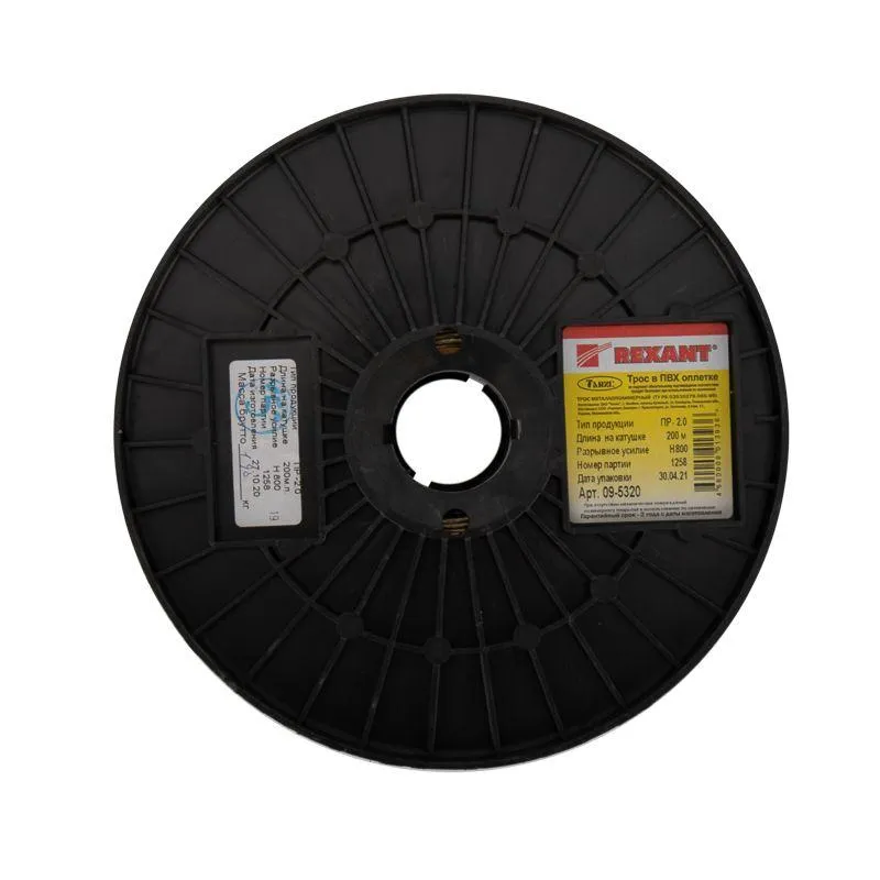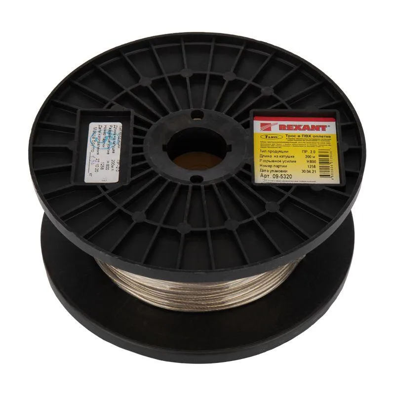 Товар Трос стальной в ПВХ изоляции d2.0мм (200м) REXANT 09-5320 доступен с доставкой по г. Москва, Лобня, Москвовской области и территории РФ, или самовывозом.