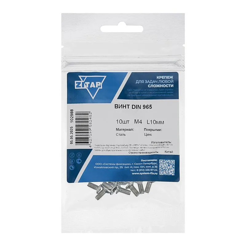 | Метрический размер резьбы | 4 | |