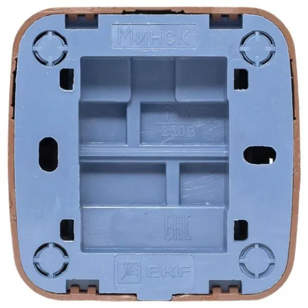 | Наименование производителя | Выключатель 1-клавишный ОП Минск 10А тёмное дерево EKF | |