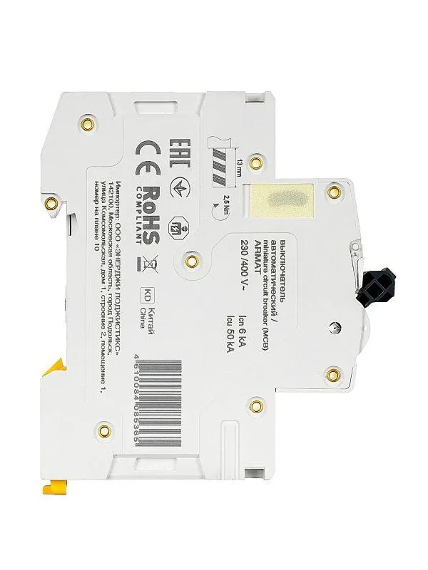 | Номин. отключающая способность при коротком замыкании Icu IEC 60898 при 400 В | 6 кА | |