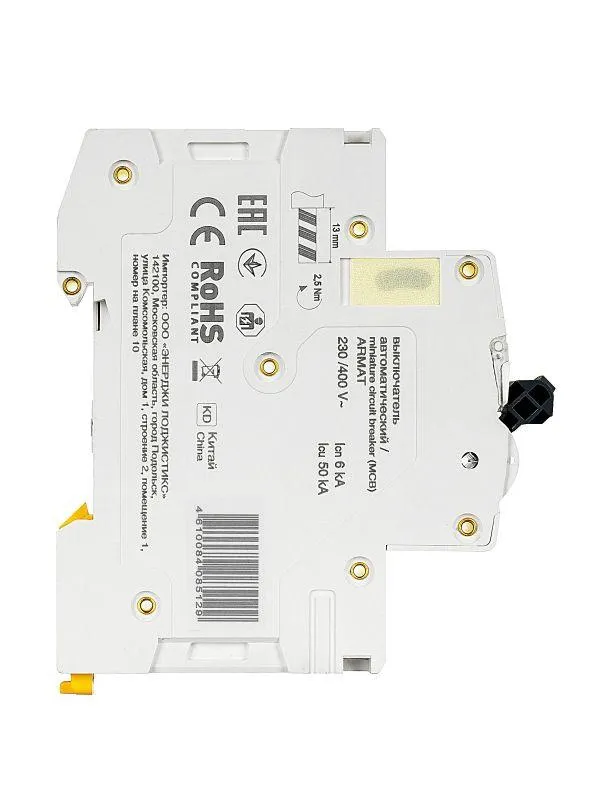 | Номин. отключающая способность при коротком замыкании Icu IEC 60898 при 400 В | 6 кА | |