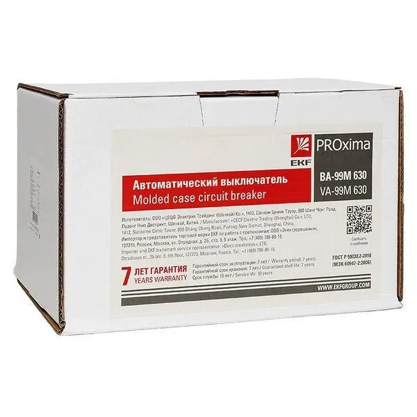 | Наименование производителя | Автоматический выключатель ВА-99М 630/630А 3P 50кА EKF PROxima | |