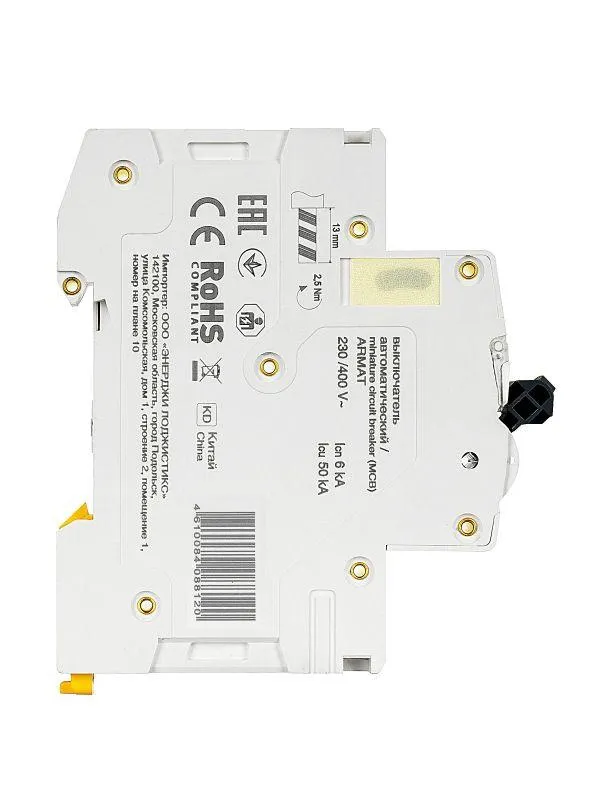 | Номин. отключающая способность при коротком замыкании Icu IEC 60898 при 400 В | 6 кА | |