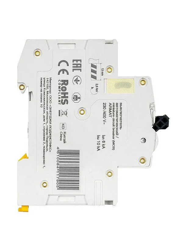 | Номин. отключающая способность при коротком замыкании Icu IEC 60898 при 400 В | 10 кА | |