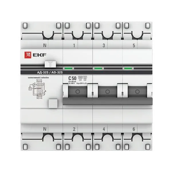 | Наименование производителя | Дифференциальный автомат АД-32 (селективный) 3P+N 50А/100мА EKF PROxima | |
