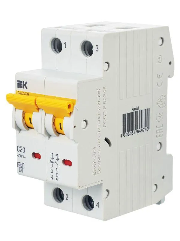 | Наименование производителя | Выкл. авт. ВА47-60M 2Р 20А 6кА С IEK | |