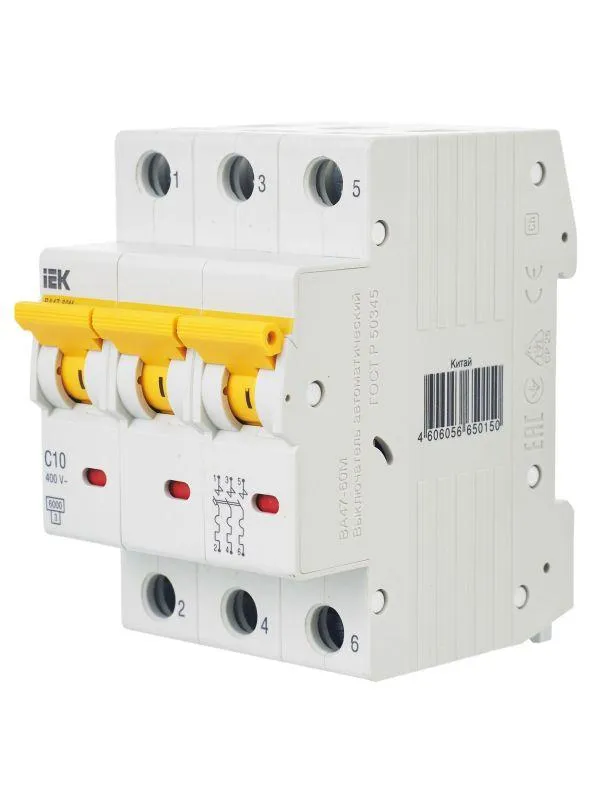| Наименование производителя | Выкл. авт. ВА47-60M 3Р 10А 6кА С IEK | |