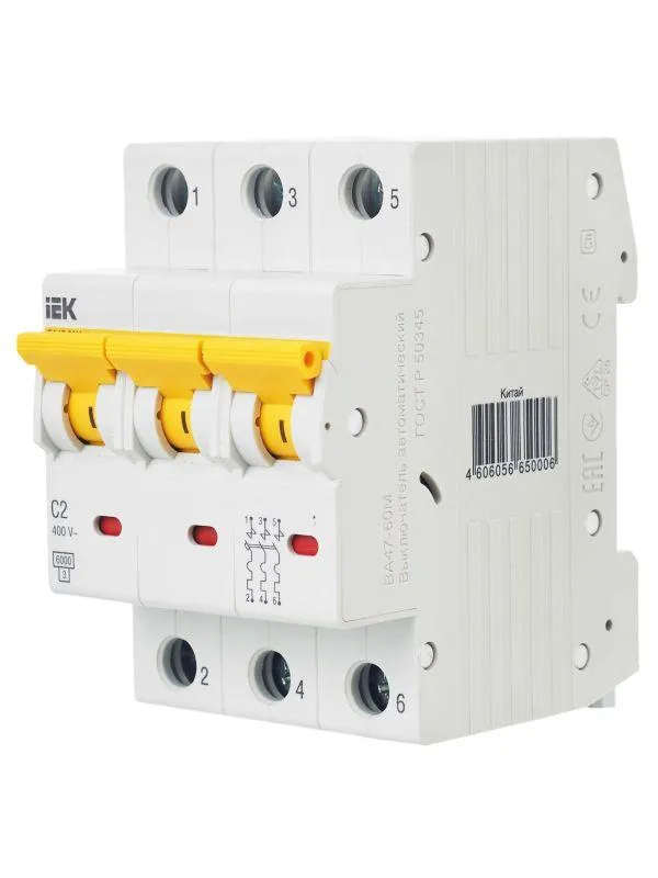 | Наименование производителя | Выкл. авт. ВА47-60M 3Р 2А 6кА С IEK | |
