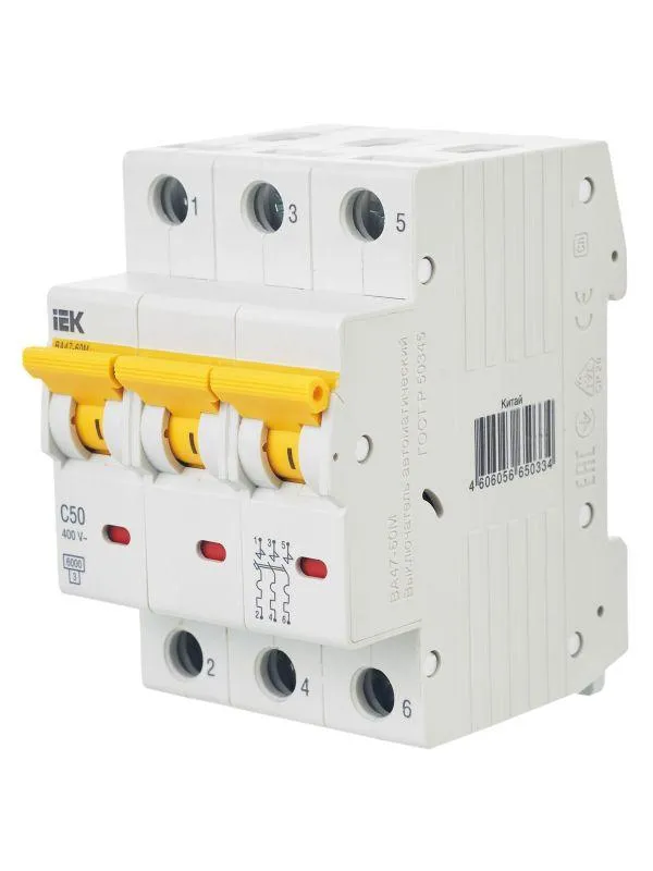 | Наименование производителя | Выкл. авт. ВА47-60M 3Р 50А 6кА С IEK | |