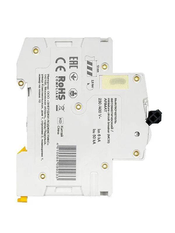 | Номин. отключающая способность при коротком замыкании Icu IEC 60898 при 230 В | 6 кА | |