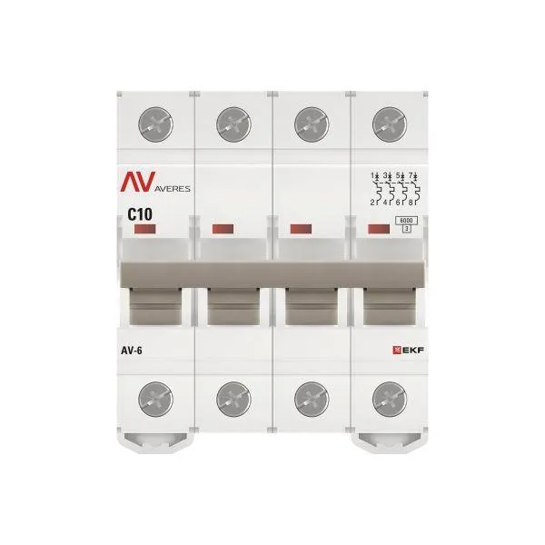 | Наименование производителя | Автоматический выключатель AV-6 4P 10A (C) 6kA EKF AVERES | |