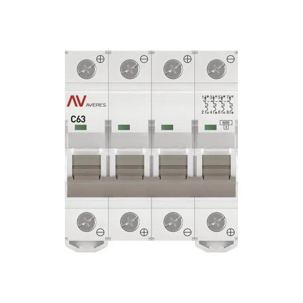 | Наименование производителя | Автоматический выключатель AV-6 DC 4P 63A (C) 6kA EKF AVERES | |