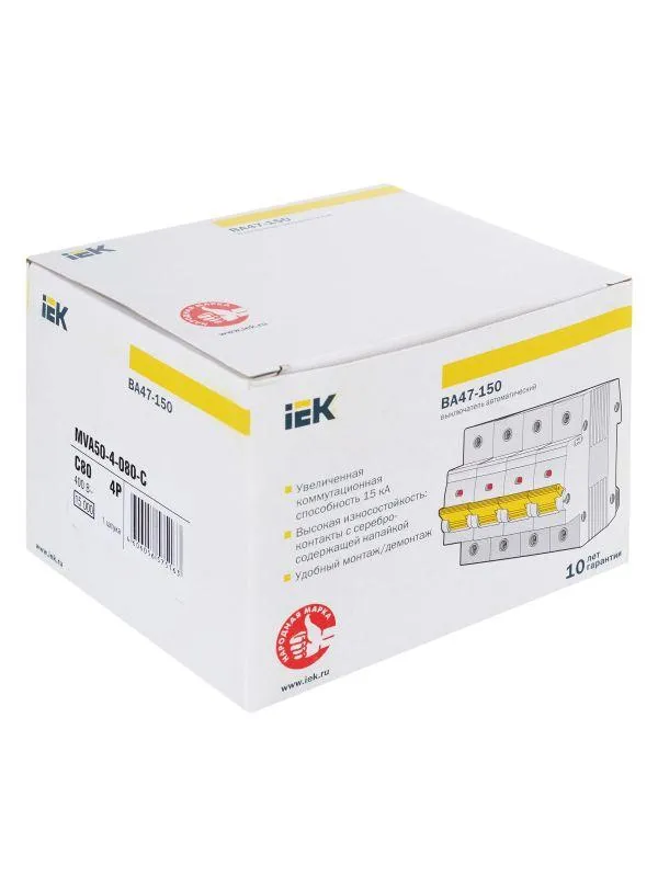 | Наименование производителя | Авт. выкл. ВА47-150 4Р 80А 15кА х-ка C IEK | |