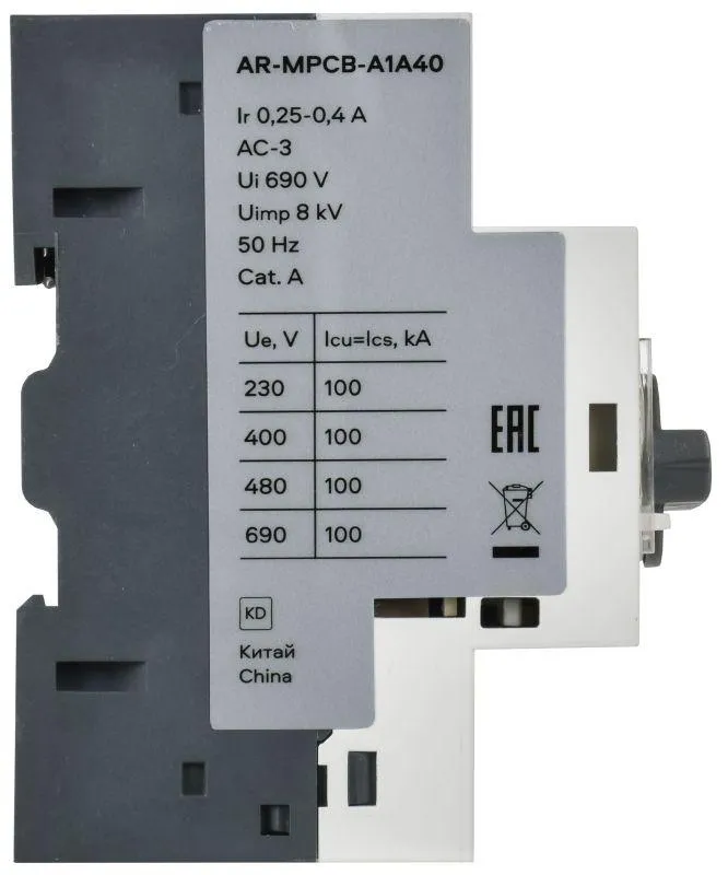 | Диапазон настройки устройства защиты от перегрузки по, А | 0.4 А | |