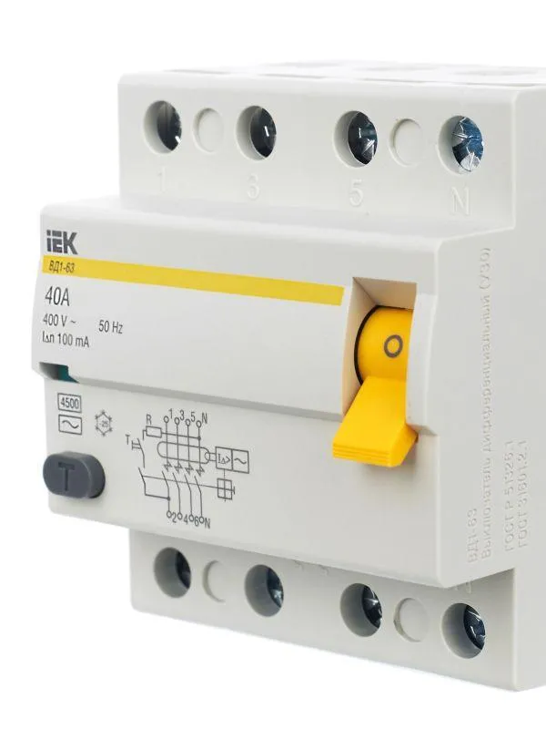 | Наименование производителя | УЗО ВД1-63 4Р 40А 100мА ИЭК | |