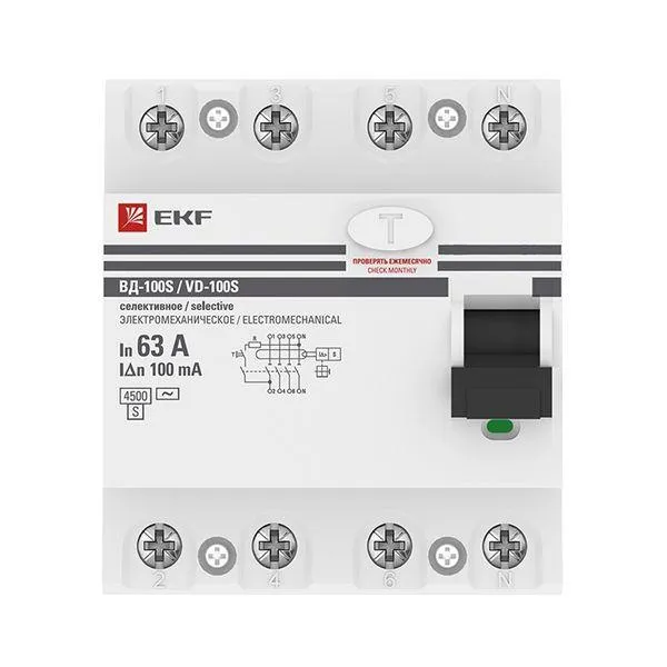 | Наименование производителя | Устройство Защитного Отключения селективное 4P 63А/100мА (электромеханическое) EKF PROxima | |