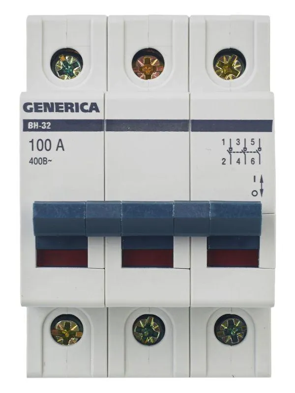 | Наименование производителя | Выключатель нагрузки (мини-рубильник) ВН-32 3Р 100А GENERICA | |