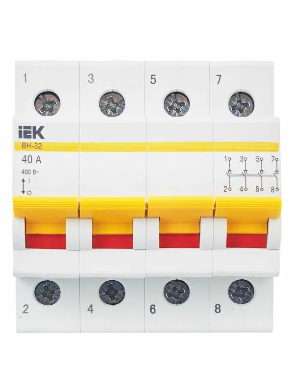 | Наименование производителя | Выключатель нагрузки (мини-рубильник) ВН-32 4Р 40А ИЭК | |