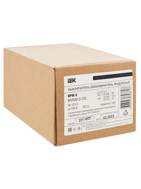 | Наименование производителя | Выключатель-разъединитель модульный ВРМ-3 3P 125А IEK | |