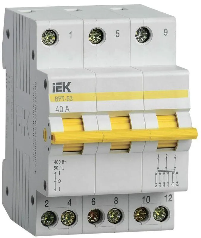 | Наименование производителя | Выключатель-разъединитель трехпозиционный ВРТ-63 3P 40А IEK | |